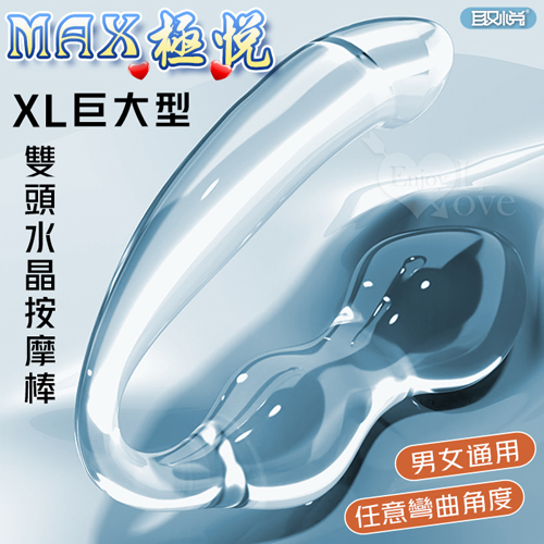 取悅 ‧ MAX極悅!XL巨大型雙頭水晶按摩棒-前陰後庭/男女皆適用﹝透明色﹞
