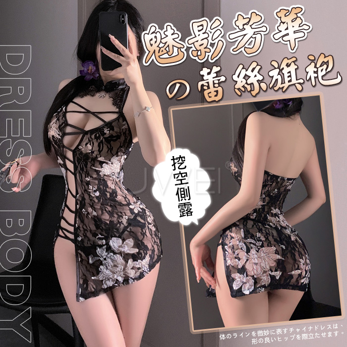 魅影芳華.國風蕾絲側開衩挖空露乳美背時尚旗袍【旗袍+T褲】