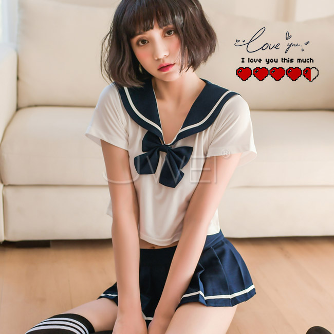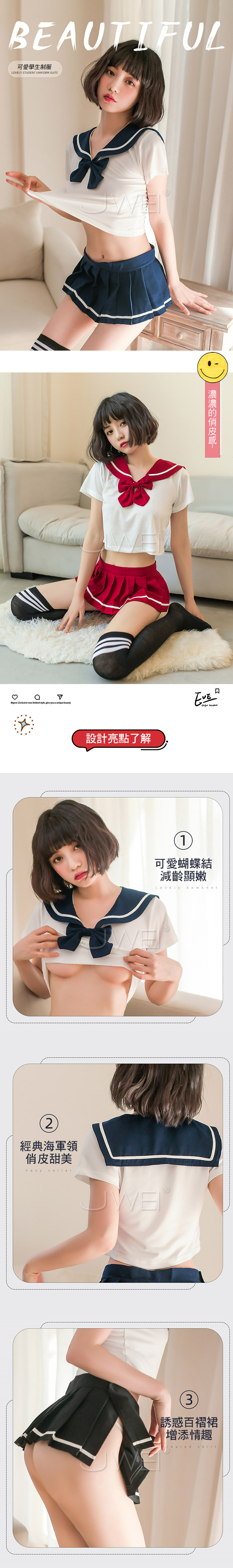經典海軍領透視上衣,俏皮甜美, 搭配可愛蝴蝶結,瞬間減齡顯嫩, 誘惑迷你百褶裙,裙擺微微飄逸若隱若現增添情趣。