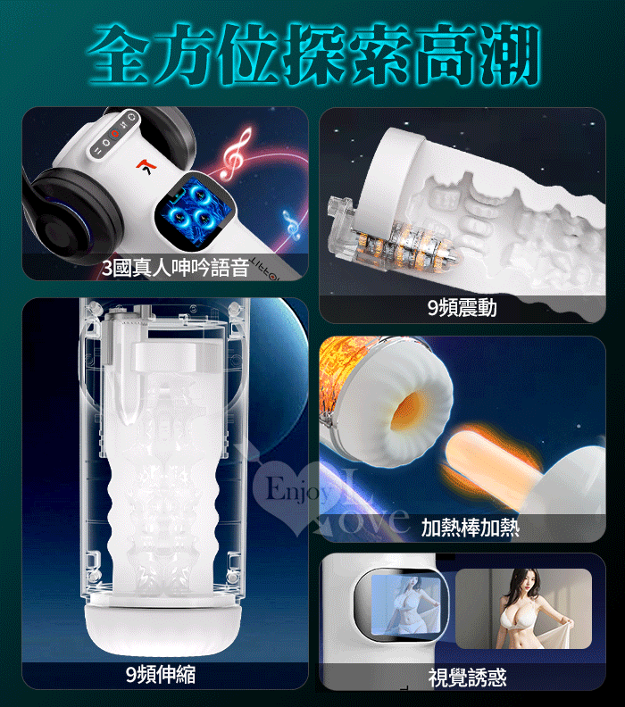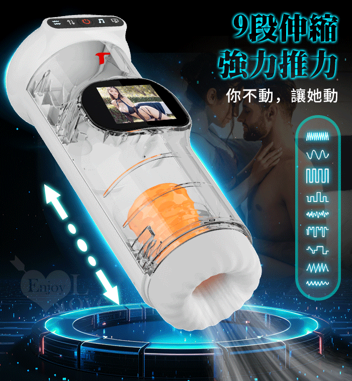 | UFO飛機杯 ‧ 9X9伸縮+震動肉粒滿腔智能加溫自慰杯﹝視覺美女圖 邊看邊撸+真人呻吟語音+液晶螢幕顯示+USB充電﹞