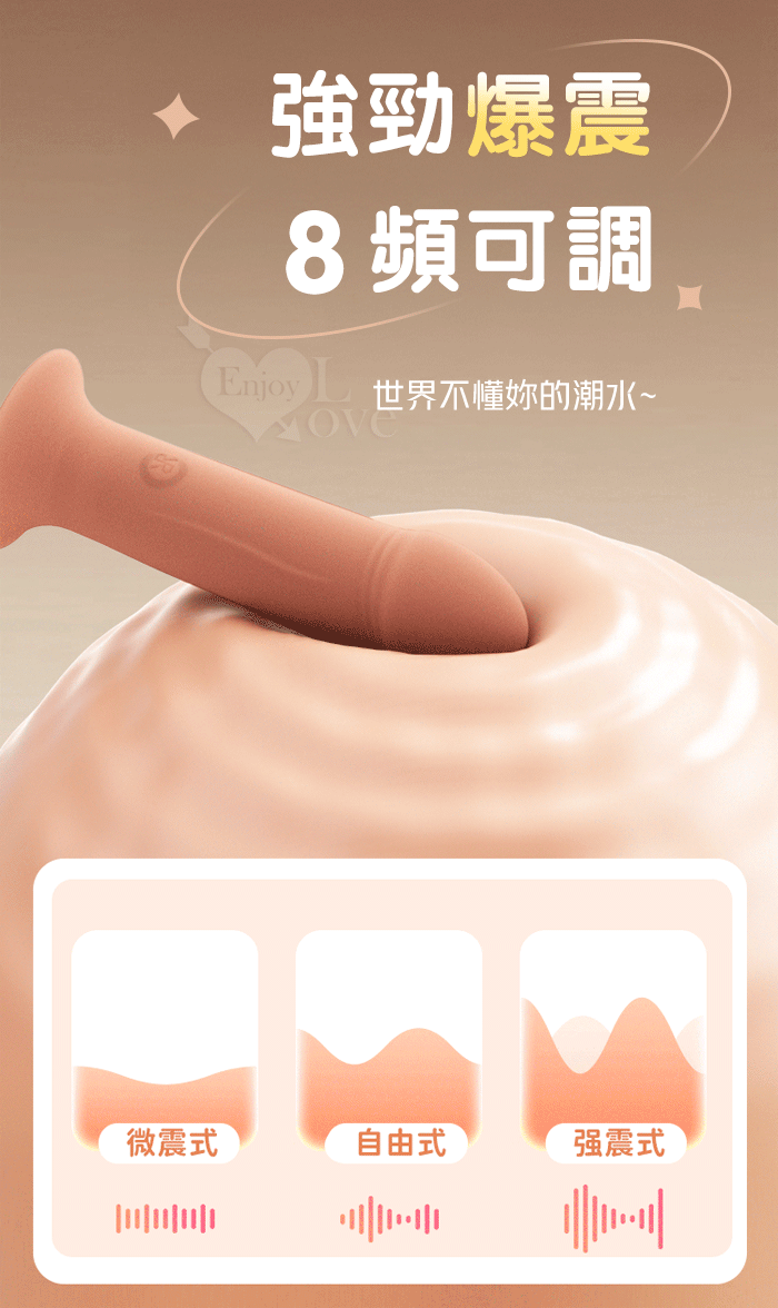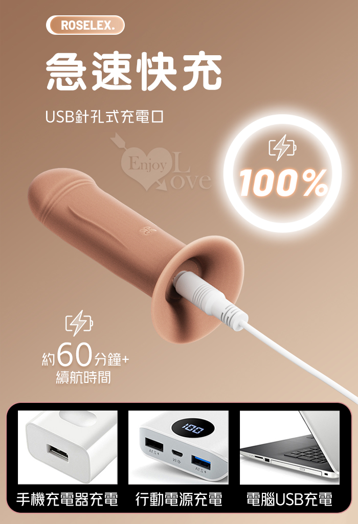 ROSELEX 勞樂斯 ‧ 小逗棒 8頻震動迷你陽具吸盤震動棒﹝親膚矽膠/小巧便攜/USB充電﹞