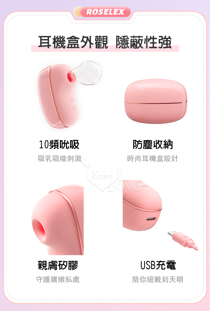 ROSELEX 勞樂斯 ‧ 蜜吻 10頻吮吸/前戲調情/吸乳吸陰/USB充電 按摩器﹝時尚耳機盒造型﹞粉