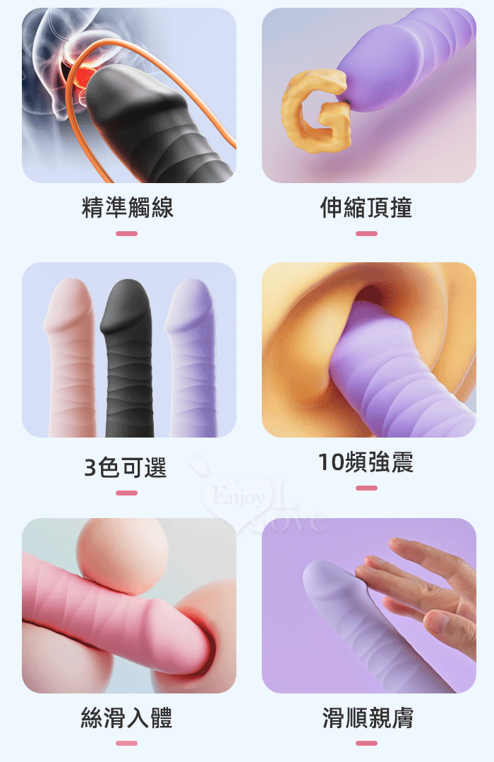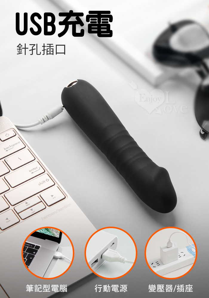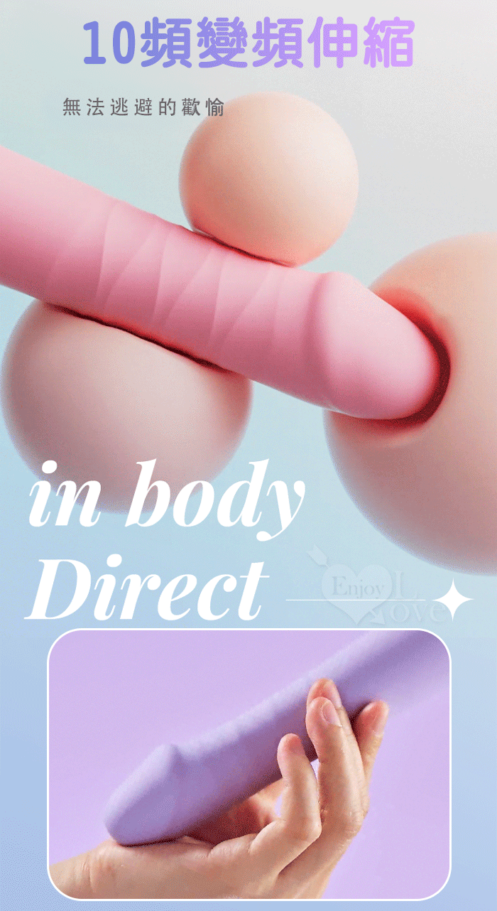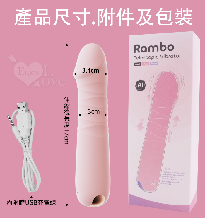 ROSELEX 勞樂斯 ‧ 蘭博 10變頻伸縮頂撞震動老二按摩棒﹝爽滑入體+螺紋摩擦+USB充電﹞淺粉