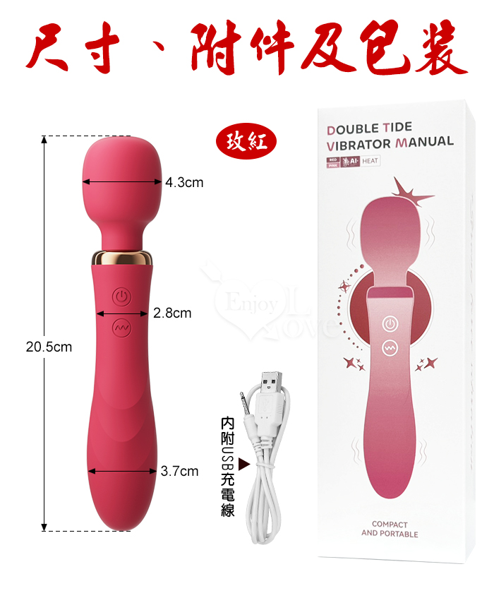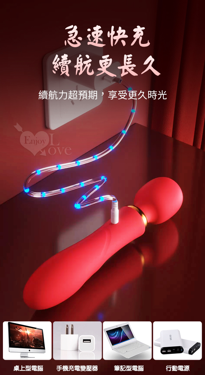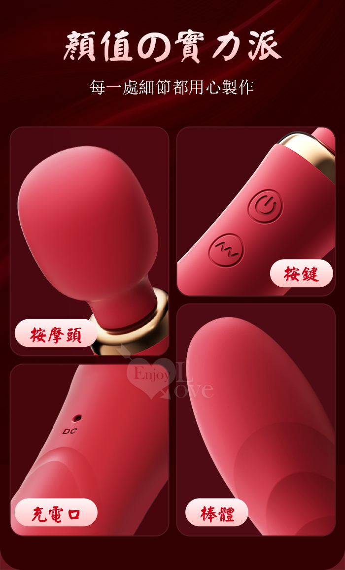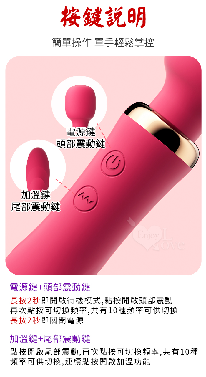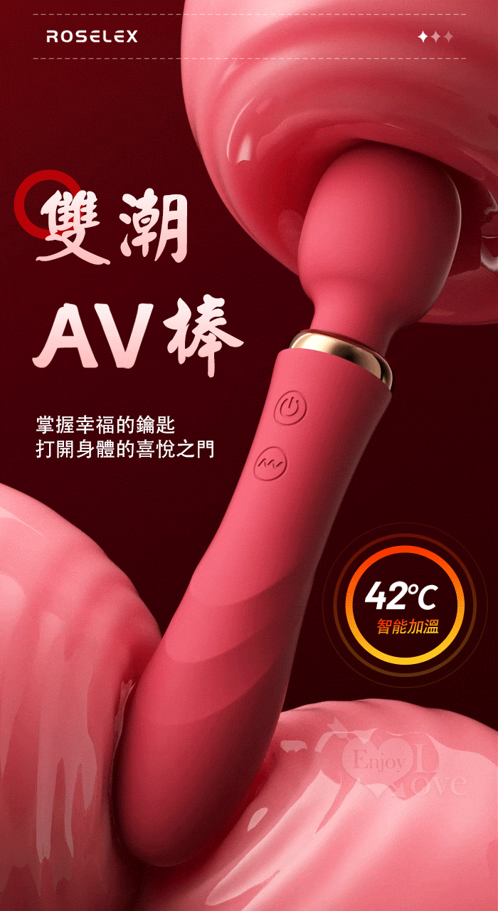 ROSELEX 勞樂斯 ‧ 雙潮 一棒雙頭用 10X10頻強震AV按摩棒﹝內外齊享/靈活頸部/智能加溫/舒適矽膠﹞玫紅