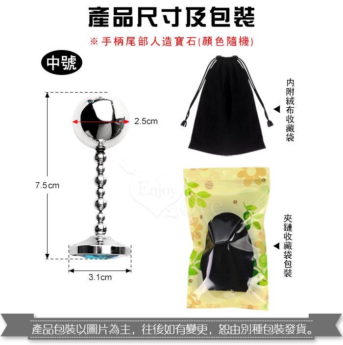 不銹鋼金屬 可活動球形肛塞﹝中號2.5cm﹞初階者專用