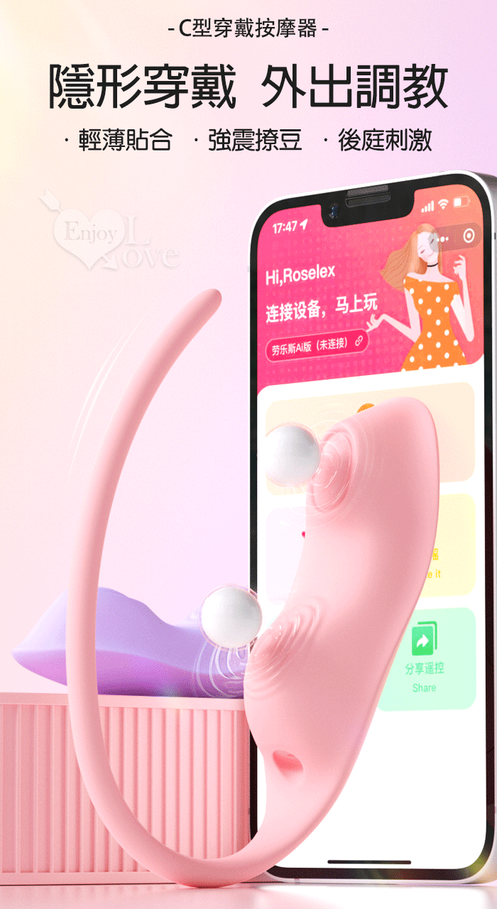 ROSELEX 勞樂斯 ‧ C型穿戴跳蛋 10頻震動隱形護墊造型按摩器 - 可手機APP遙控﹝具兩種操控模式﹞紫