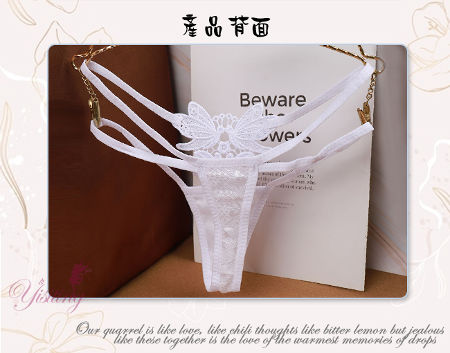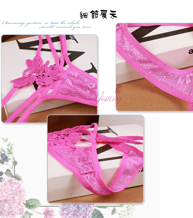 甜蜜舞動!蝴蝶雙飛彈力細帶花卉網紗美臀T字褲﹝白﹞