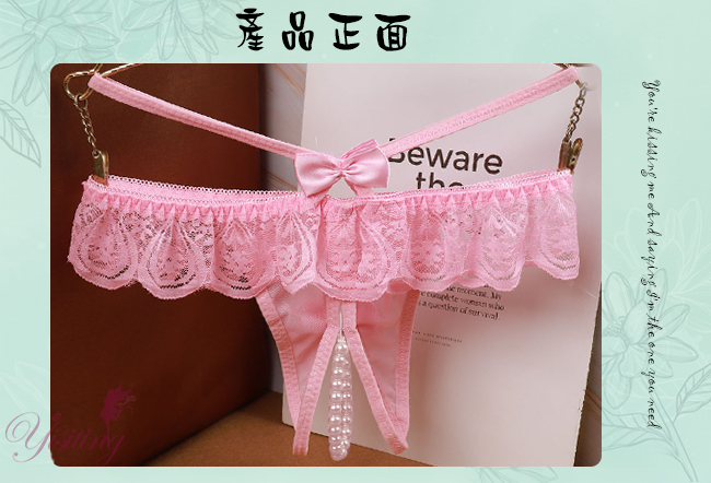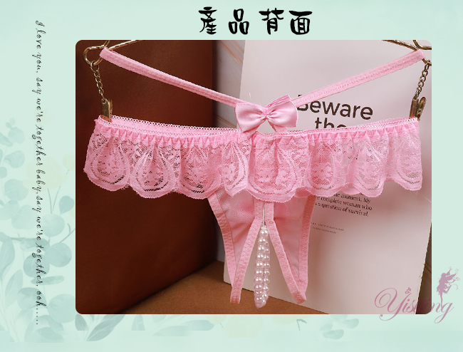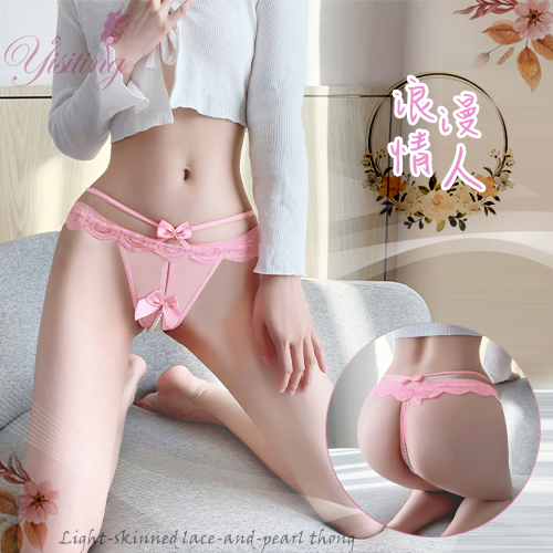 浪漫情人!輕膚柔紗拼接蕾絲迷人珍珠開襠丁字褲﹝粉﹞