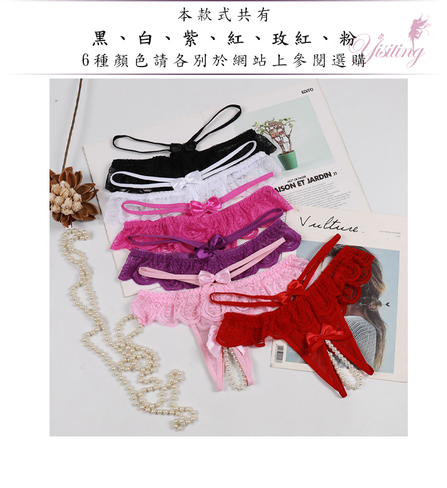 浪漫情人!輕膚柔紗拼接蕾絲迷人珍珠開襠丁字褲﹝白﹞