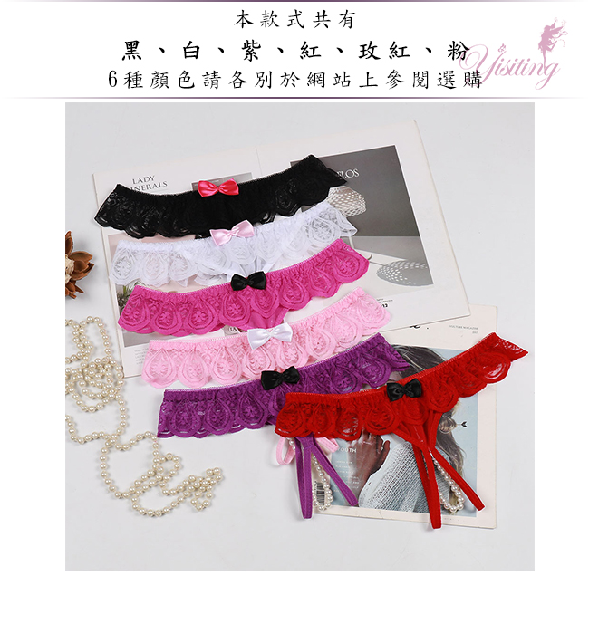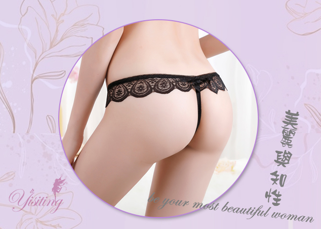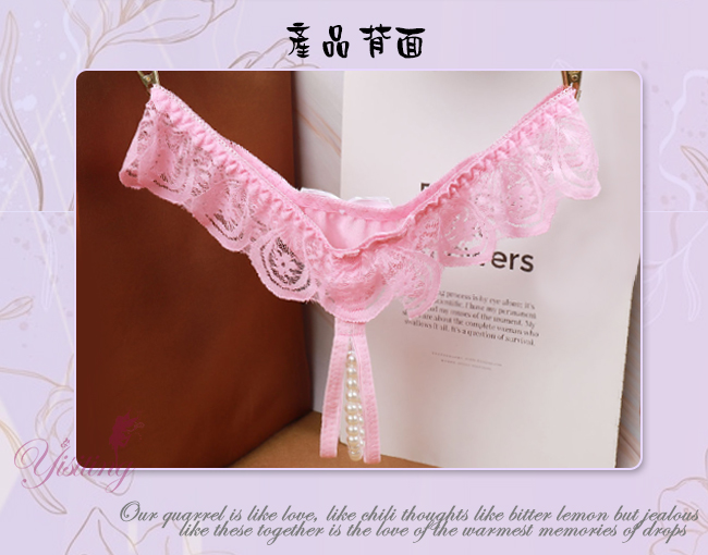 完美挑逗!蕾絲花邊露屁屁串珠開襠低腰褲﹝粉﹞