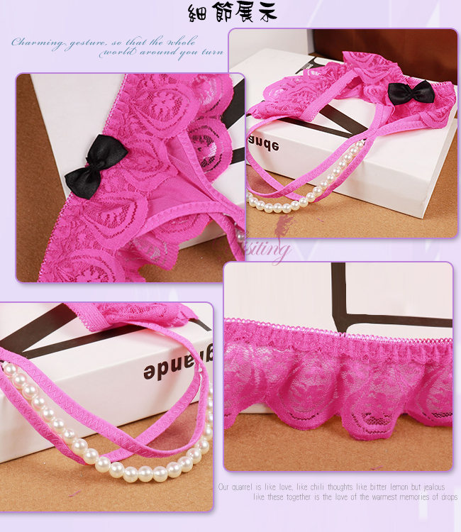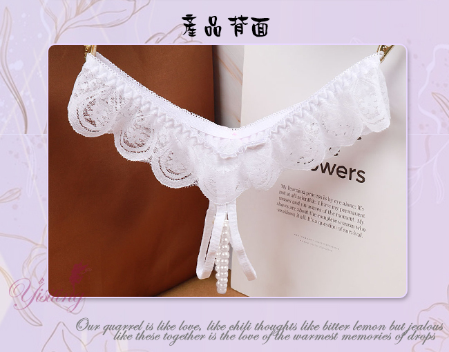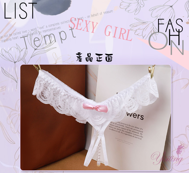 完美挑逗!蕾絲花邊露屁屁串珠開襠低腰褲﹝白﹞