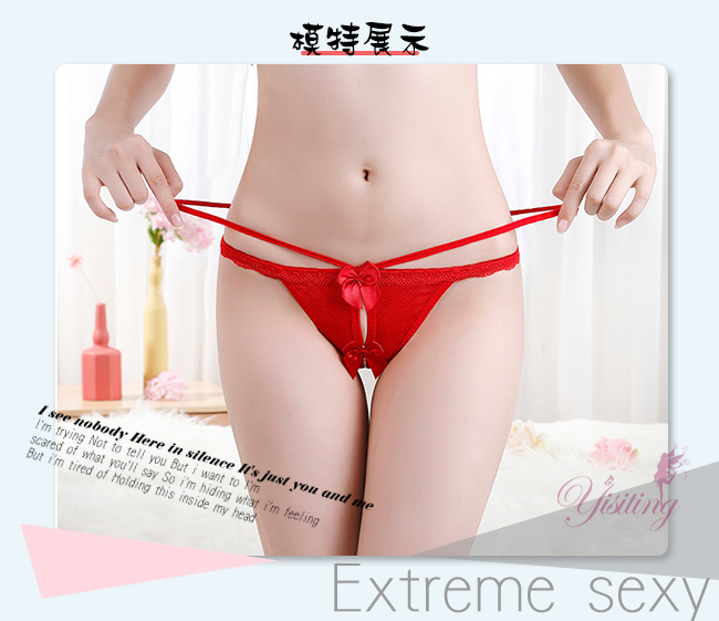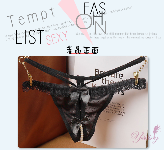 戀愛日記!性感裸臀雙蝴蝶結閃耀珍珠開襠褲﹝黑﹞