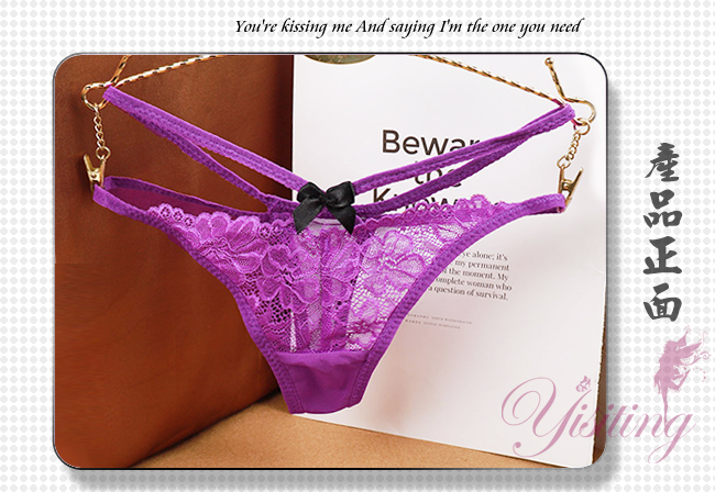 寵愛今夜!雙細帶蕾絲花朵性感美臀T字褲﹝紫﹞