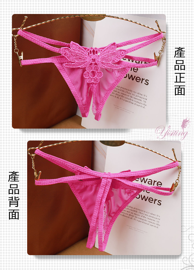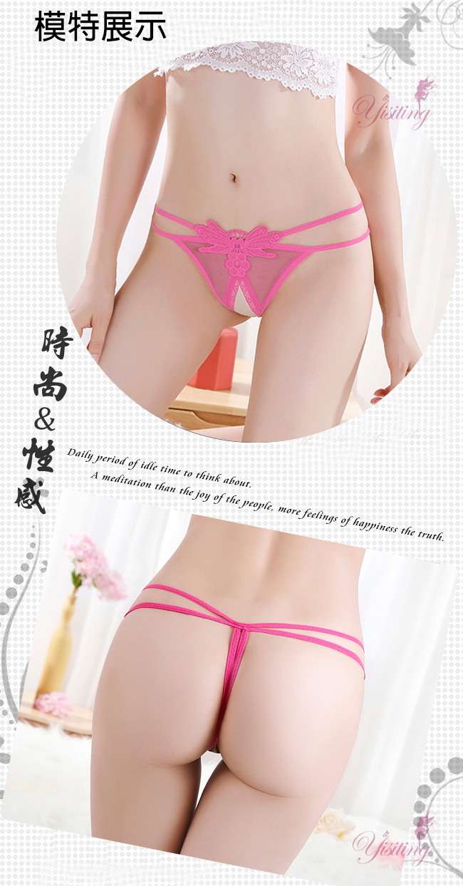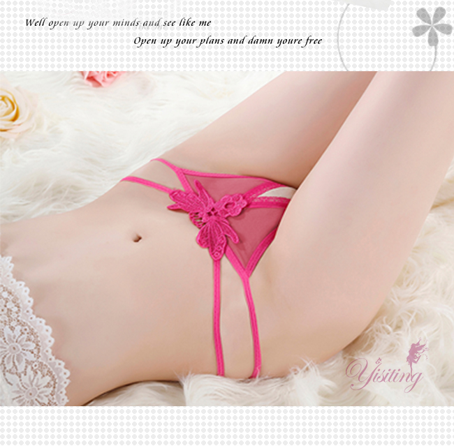 迷情綻放!雙彈力帶蝴蝶刺繡誘人露臀開襠丁字褲﹝玫紅﹞