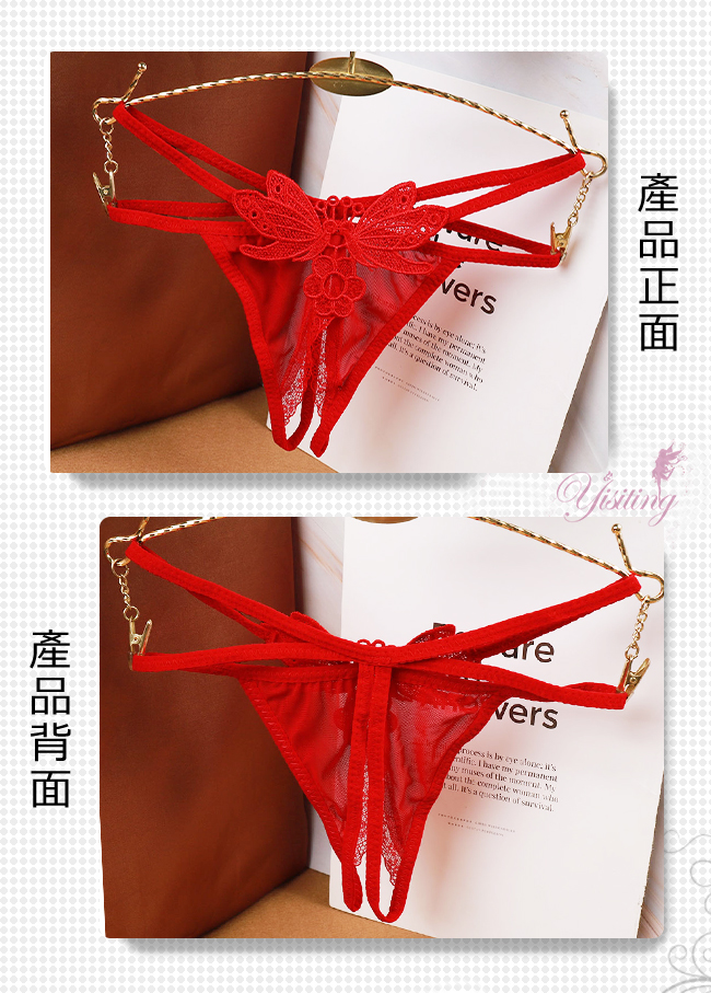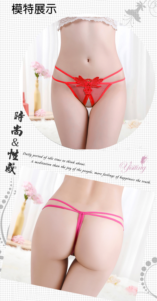 迷情綻放!雙彈力帶蝴蝶刺繡誘人露臀開襠丁字褲﹝紅﹞