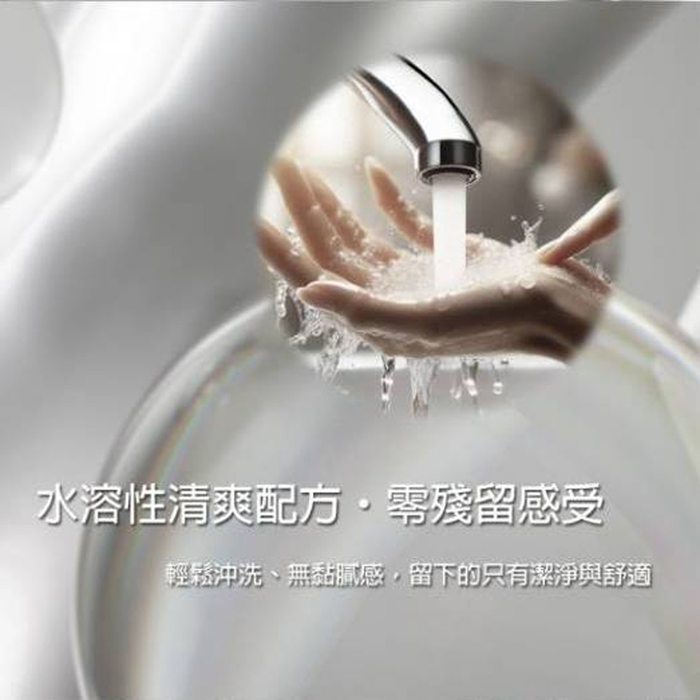 易於清洗:不黏膩,水溶性質地,使用後可輕鬆沖洗。