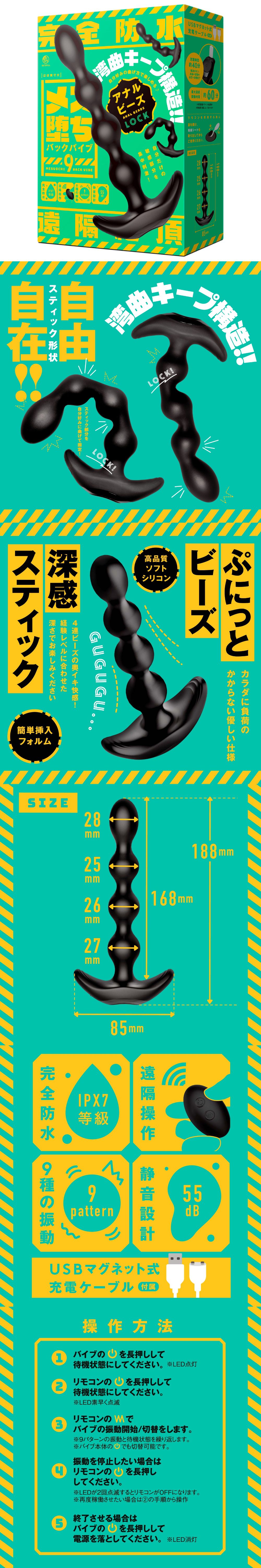 首頁>【日本HATOPLA】雌墜9頻可彎遙控震動後庭拉珠