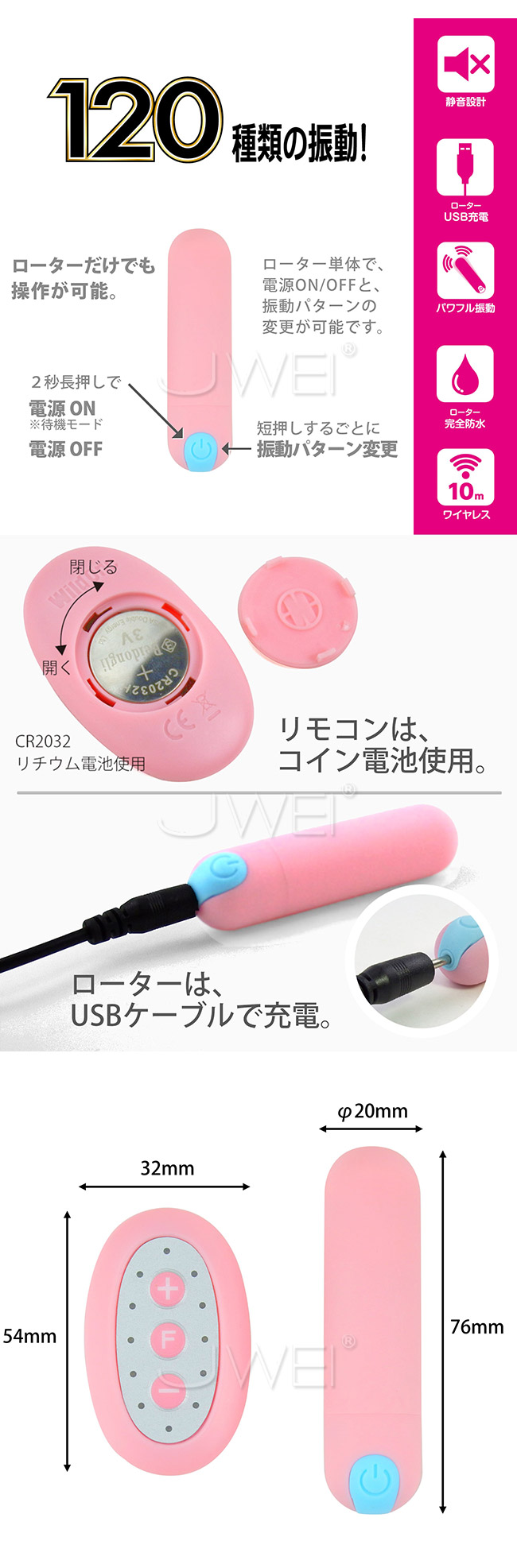 | 日本原裝進口SSI. 遠隔ピンクローターType-R 12x10段變頻遠端操控遙控跳蛋-粉色