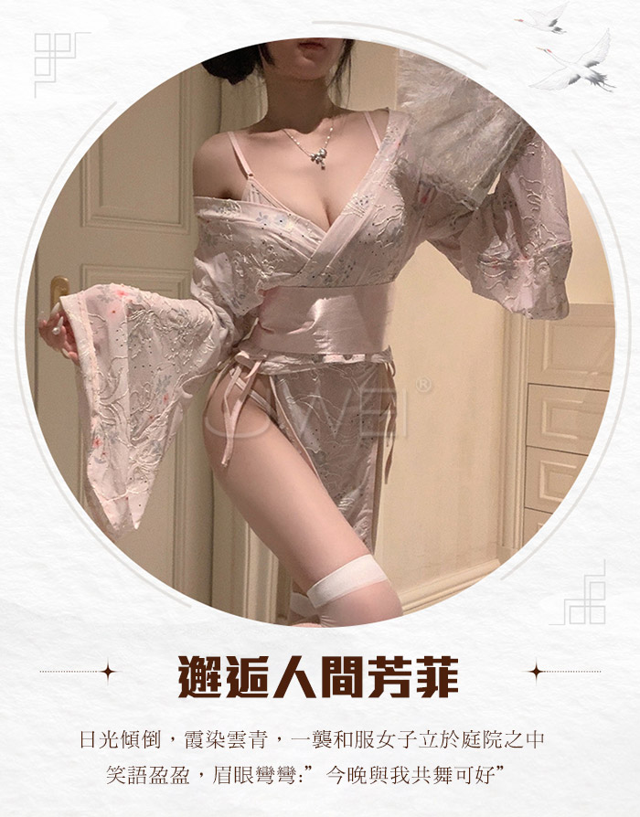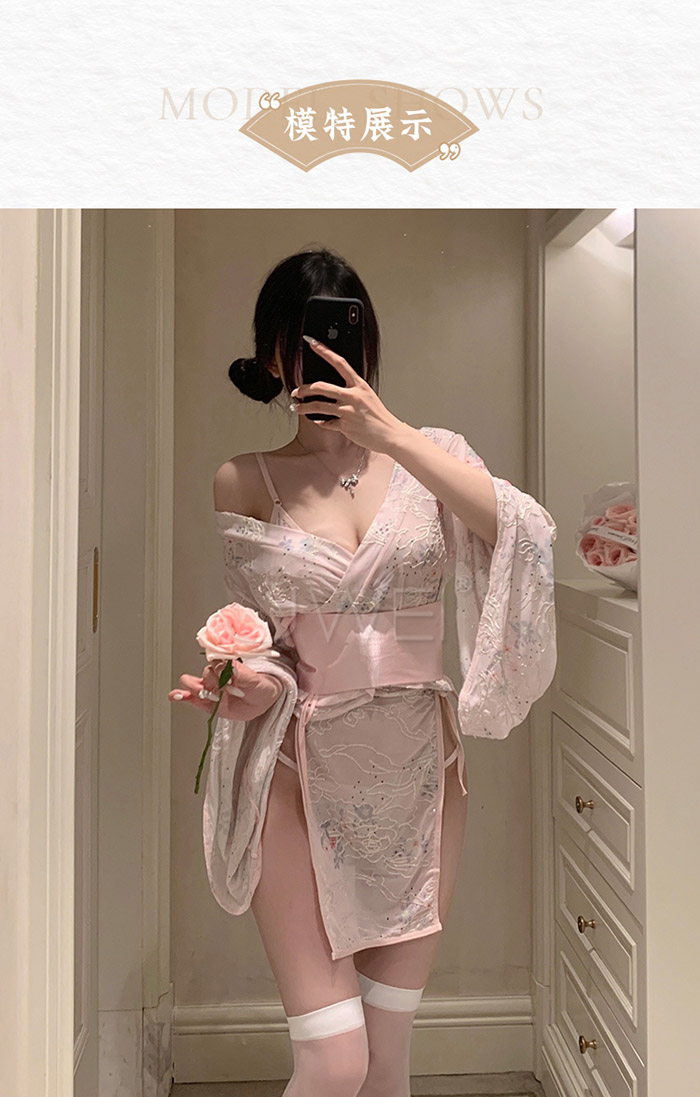 ■內容物:外套+胸罩+T褲+腰封+分片裙*2 ■適穿尺寸:FREESIZE ■彈性:微彈 ■未撐開平量尺寸正負誤差1~2cm,1吋=2.54cm ■注意事項:基於保障消費者個人衛生,此貼身衣物恕不接受退換貨。 (如為商品本身暇疵,接受七日內換貨,請勿試穿,謝謝您)