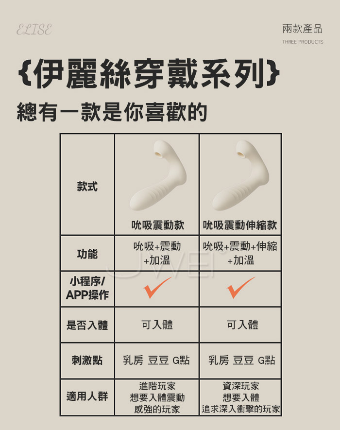 伊麗絲跳蛋,不一樣的穿戴情趣,AI男友親密互動!多樣人設滿足不同幻想~ 吮吸+震動+伸縮 三合一多功能刺激,全身酥爽!無死角貼合密道穩穩不掉落 智能升溫 告別冰冷,暖暖得更貼心,享受更溫暖的愛~ ■尺寸:大小詳如圖片標示 ■材質:矽膠+ABS ■供電:針孔充電 ■特色:10頻伸縮震動、APP智控、加溫