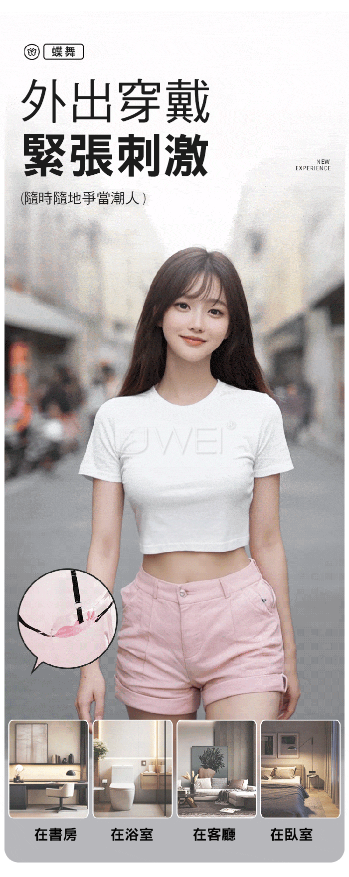 如蝶舞般,貼合肌膚,開啟私密愉悅新體驗 綁帶設計,物理固定,緊緊的抱著不脫落,集中刺激!! 手机遥控智能APP,創意玩法不重樣 體驗不一樣的快樂 3種強度6種變頻,高頻震動,萬轉高速機芯併發超強能量 ■尺寸:大小詳如圖片標示 ■材質:矽膠+ABS ■供電:USB充電 ■模式:9頻強震、APP智控