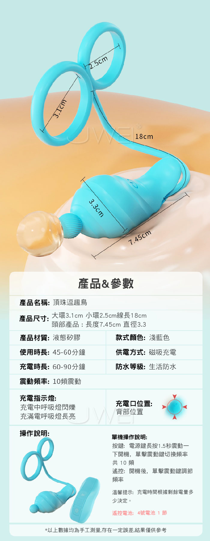 | 頂珠逗趣鳥.10頻強震大圓珠直頂深處鎖精多功能無線遙控按摩器