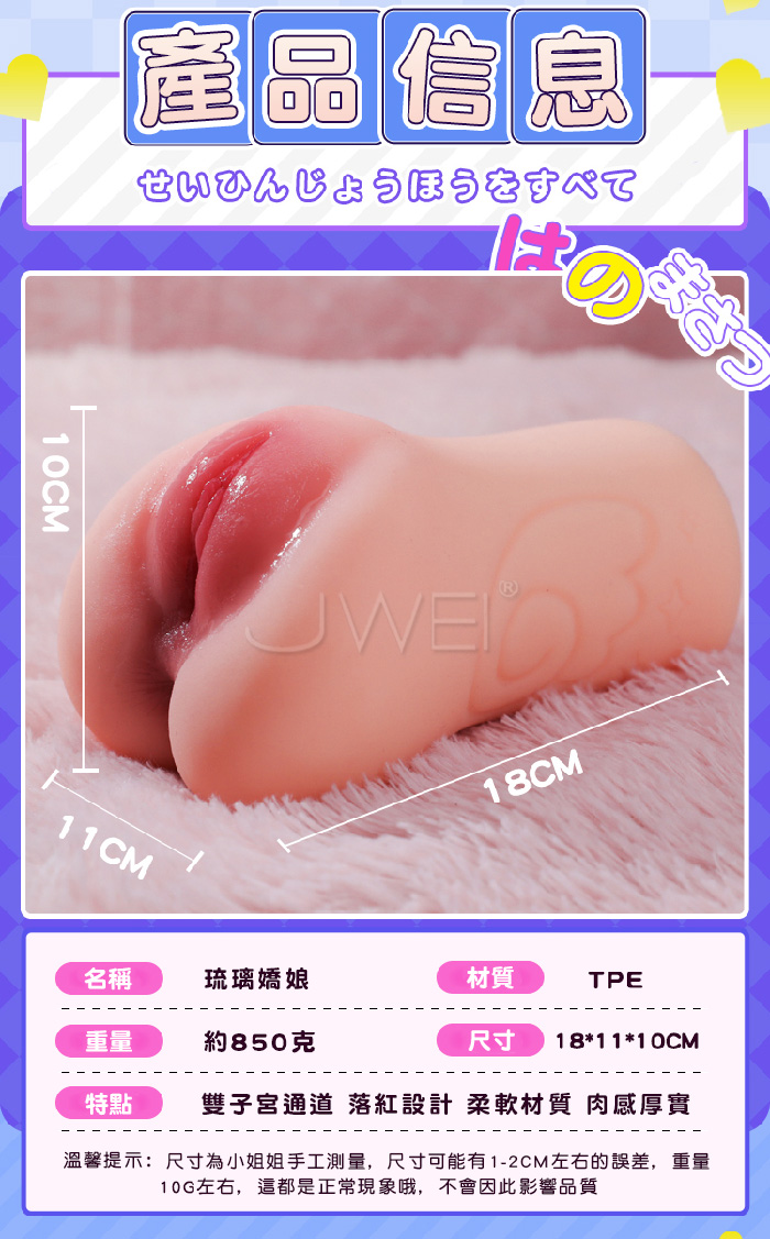 琉璃嬌娘 櫻梨,高刺激雙子宮吮汁 純潔膜落紅體驗+奶香體味 香甜可口~ 真肌柔軟觸感,前後雙穴850g包裹,好似觸摸到她~ ■尺寸:大小詳如圖片標示 ■重量:約850g ■材質:TPE ■特點:雙子宮通道、落紅設計、柔軟材質、肉感厚實