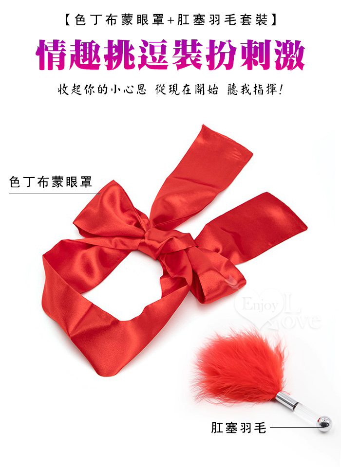 色丁布蒙眼罩+肛塞羽毛套装﹝挑逗+裝扮刺激﹞艷紅色