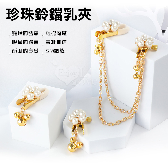 【乳の調戲】高檔珍珠花瓣鈴鐺乳夾~女用調教乳頭夾子﹝一對裝﹞