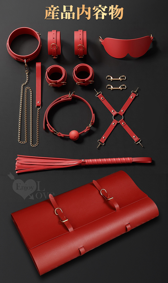 SM情趣道具 ‧ 調教捆綁束縛皮革七件套~時尚包包/方便收納/成人性愛玩具﹝酒紅色﹞