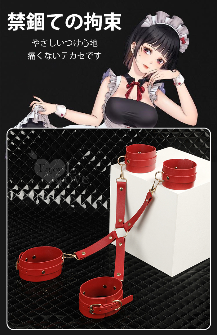 SM情趣道具 ‧ 皮革十字扣+手腳銬~調教捆綁束縛/成人性愛玩具﹝酒紅色﹞