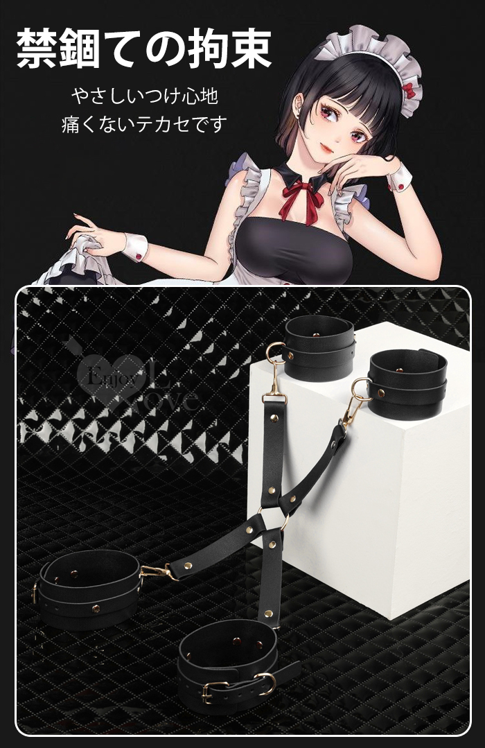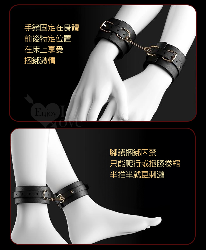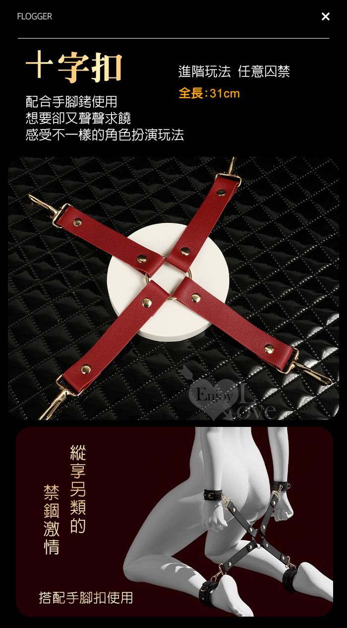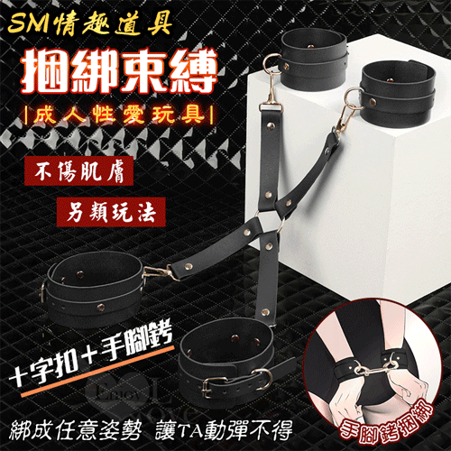 SM情趣道具 ‧ 皮革十字扣+手腳銬~調教捆綁束縛/成人性愛玩具﹝經典黑﹞