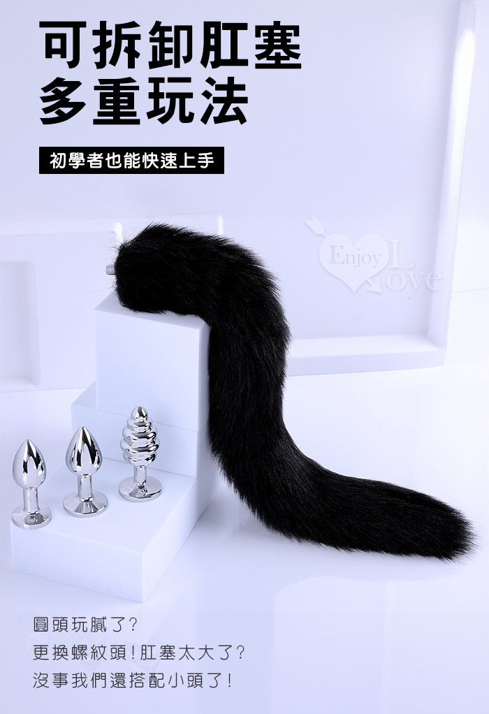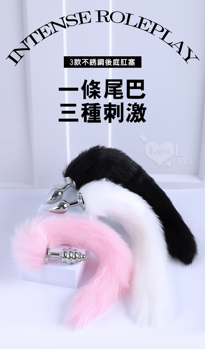 激性扮演狐狸精 ‧ 3款不銹鋼後庭肛塞+純粉尾巴毛套裝組﹝可組裝拆卸﹞