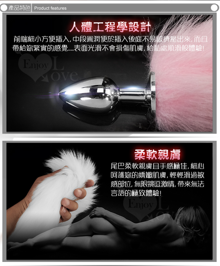 激性扮演狐狸精 ‧ 不銹鋼後庭肛塞+尾巴毛 - 粉﹝M 可組裝拆卸﹞