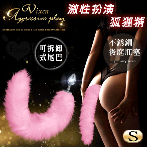 激性扮演狐狸精 ‧ 不銹鋼後庭肛塞+尾巴毛 - 粉﹝S 可組裝拆卸﹞