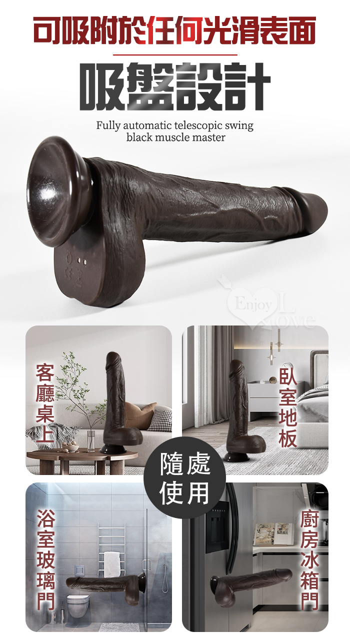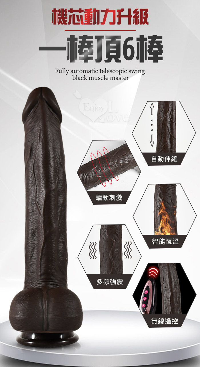 羅馬鬥士 ‧ 黑老大 超高仿真液態矽膠肉感陽具﹝無線遙控9X9蠕動伸縮震動+42°恆溫+吸盤+磁吸充電﹞