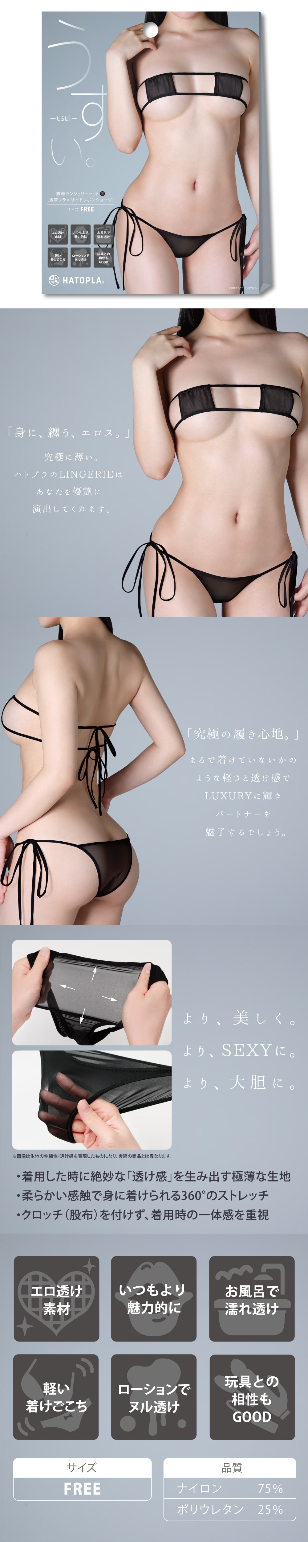 《薄。 -usui-眼罩式胸罩 × 側綁帶內褲(黑色)》