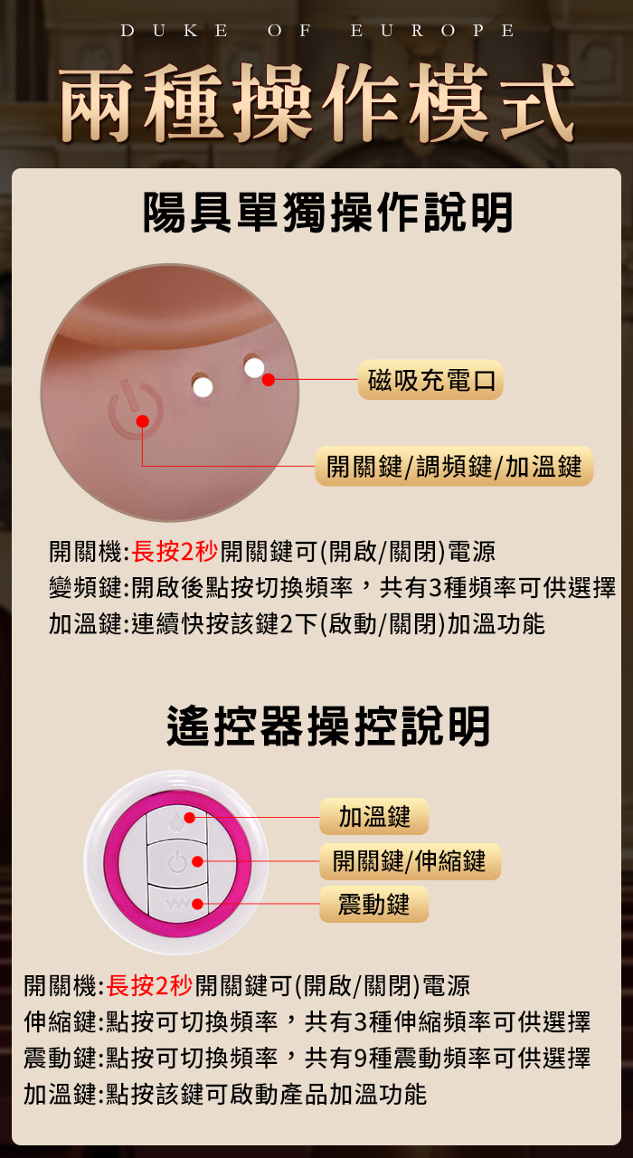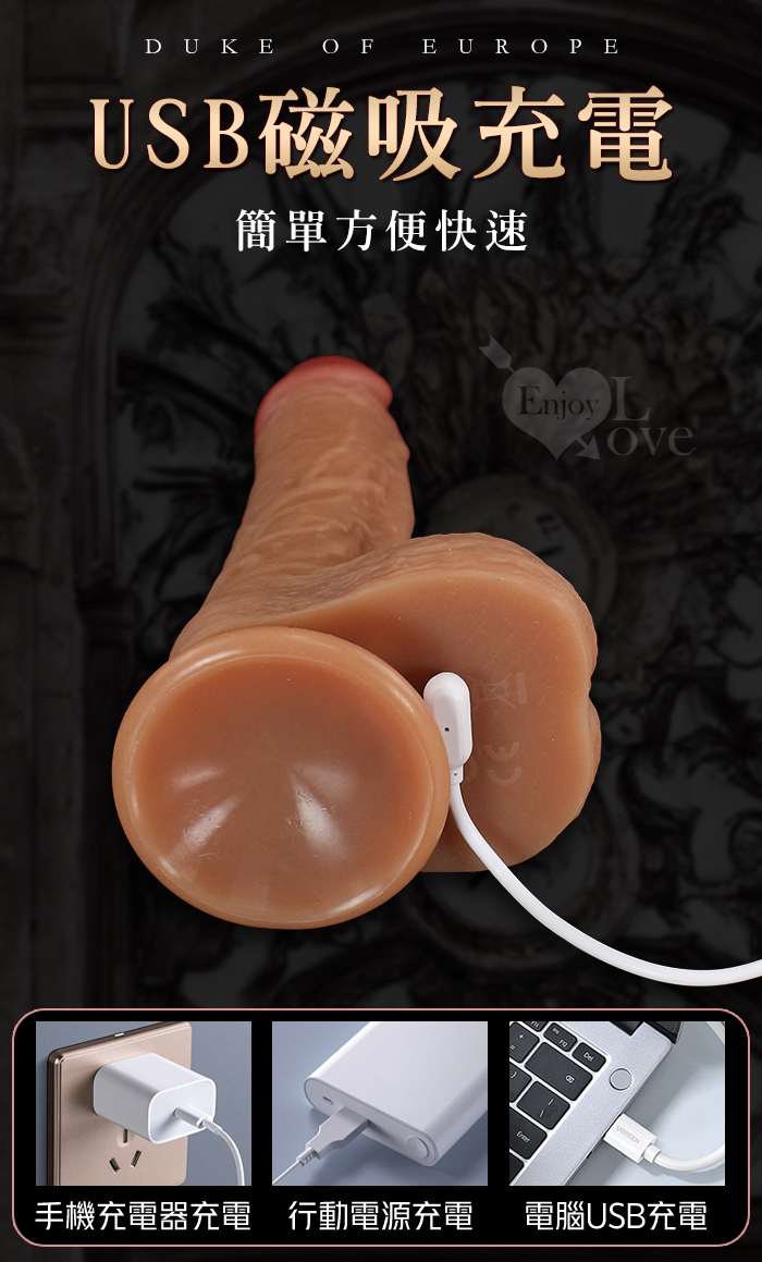 歐洲公爵 ‧ 無線遙控抽送撞擊 液態矽膠超肉感逼真大老二﹝強勁蠕動伸縮震動+加溫+吸盤+磁吸充電﹞