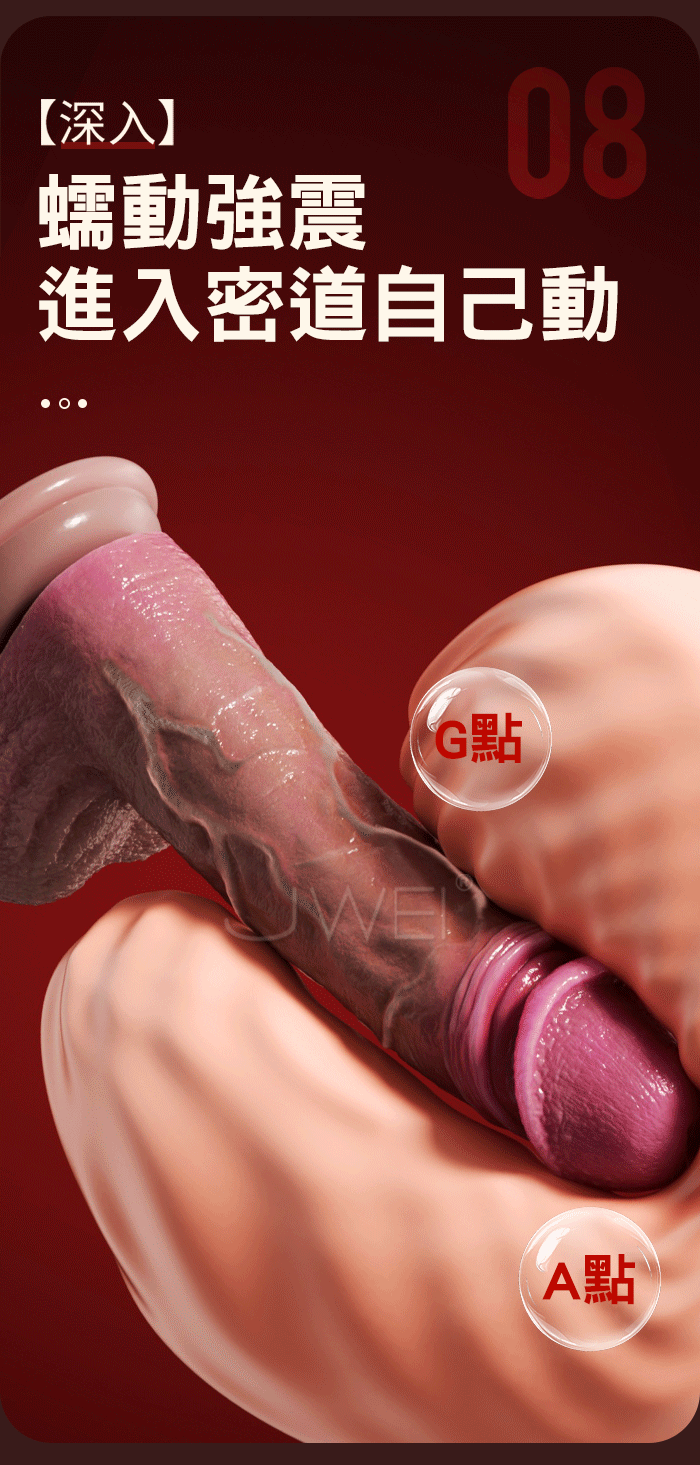 塞進去!自己動!創新黑科技 蠕動爽翻天!新穎玩法 更強高潮~ 精密機械,創新蠕動功能,3頻蠕動,10頻震動,密道包裹,強/快/飽滿讓快感加倍 液態矽膠,真的軟不怕傷,軟中帶硬 比他好用,智能加溫仿真溫暖體驗 產品規格 ■材質: 液態矽膠 ■規格: 詳如圖片標示 ■功能: 3頻蠕動、10頻震動、遙控