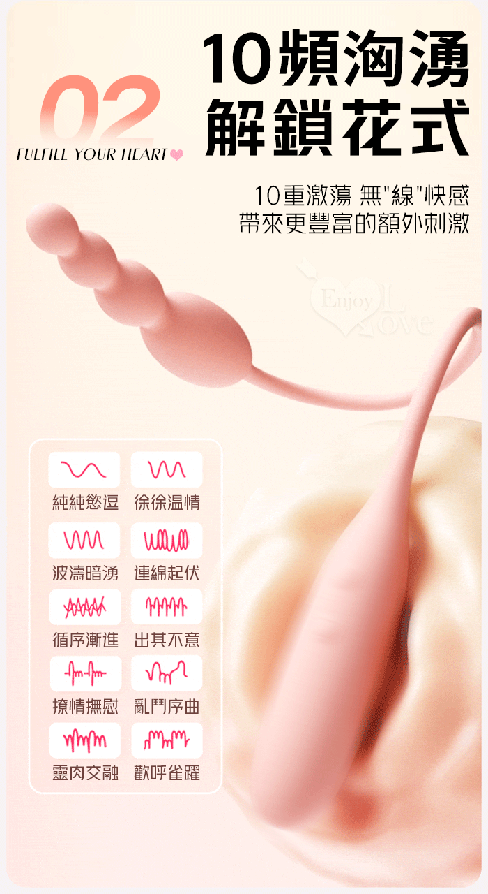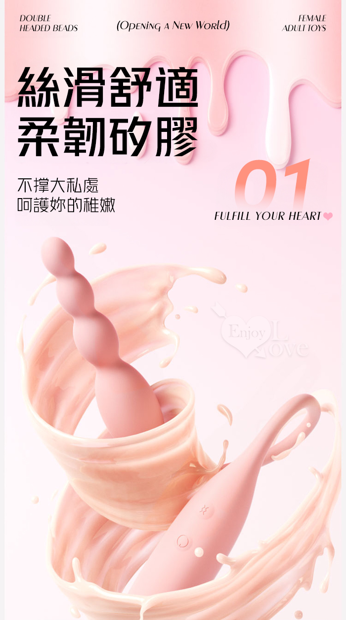ROSELEX 勞樂斯 ‧ 柔拉 拉珠蛋+長跳蛋二合一 可獨立控制款 ﹝10頻酥麻震感+雙穴齊入+磨砂舒適觸感+USB充電﹞