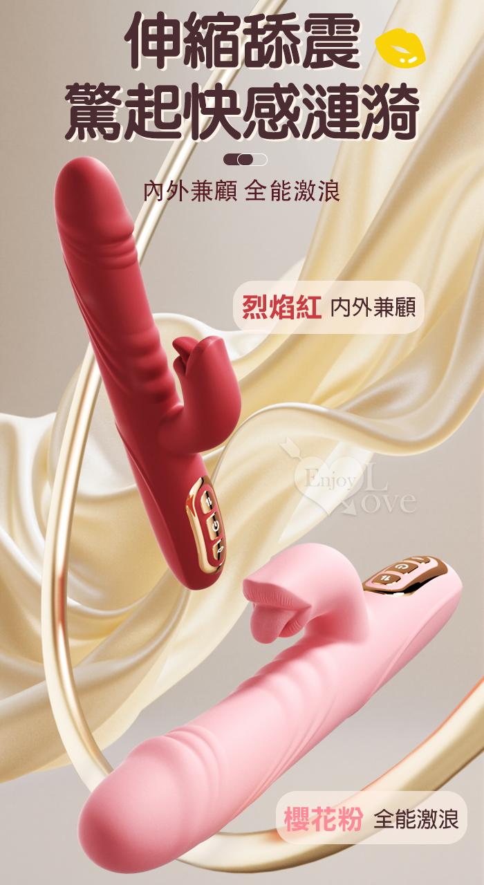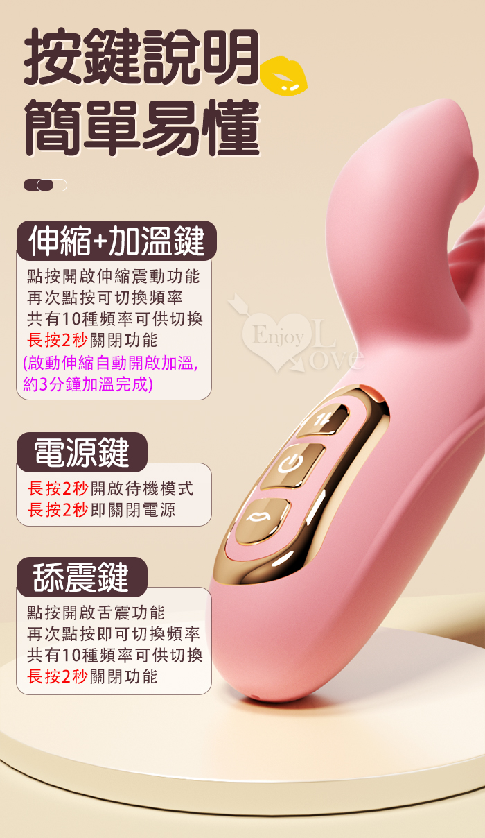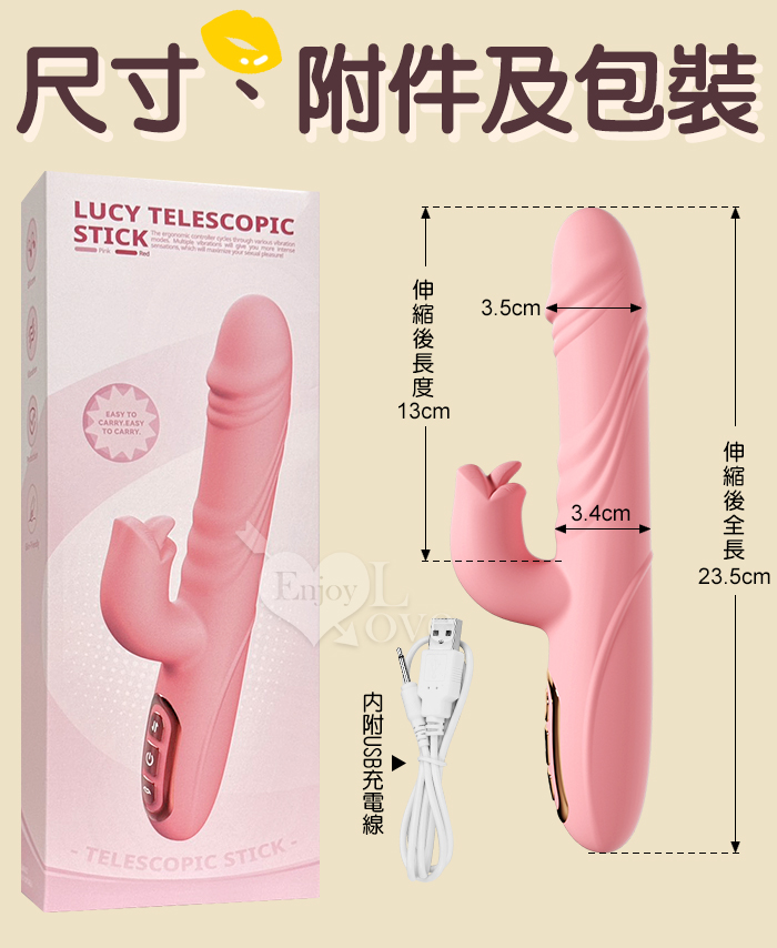 Soul Choice 露西 ‧ 動感10X伸縮10X舔震仿真老二按摩棒﹝衝擊蜜穴+唇舌強震+智能加溫+親膚矽膠+靜音防水/便捷充電﹞粉