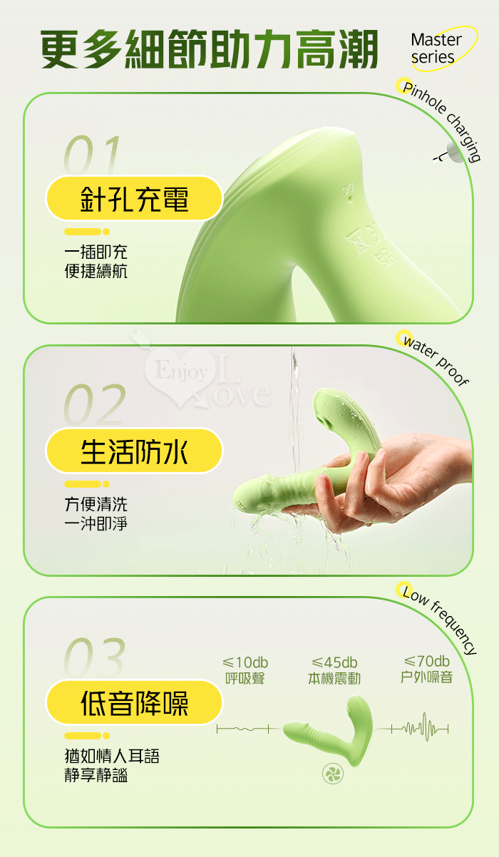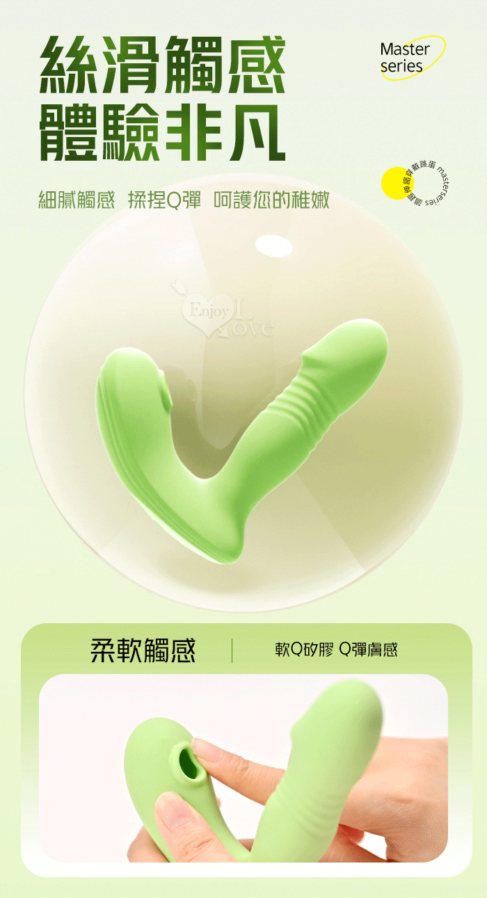 ROSELEX 勞樂斯 ‧ 識趣 10變頻伸縮+震動/吮吸內外齊歡智能加溫按摩器 - 可手機APP遙控﹝具兩種操控模式﹞綠色