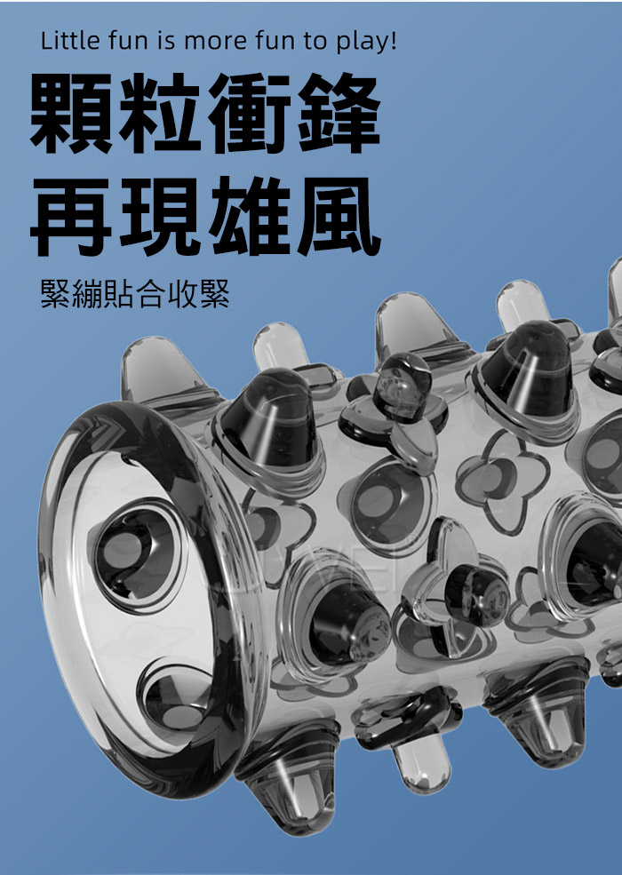 雄風纏綿露頭設計鎖精高潮環,鎖精、長時、加強,大顆粒柔軟材質,顆粒密集大狼牙套 直入深處波濤洶湧,漫漫長夜裡有她跟他一起是一種浪漫溫馨的時刻 這時候戴來一點不同,整個長夜餘韻悠長,帶她進入新的領域遨遊! ■材質:TPE ■功能:加粗變大,顆粒刺激,鎖精延時 ■內容:4入裝