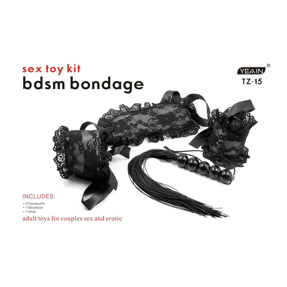 | 滿2000元贈品 SM情趣調情組合黑色情慾蕾絲三件套(眼罩+手銬+鞭子)
