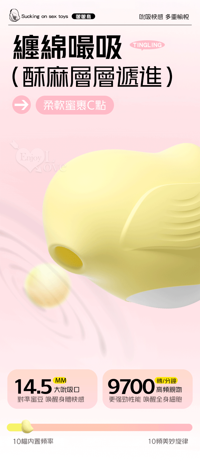 啵啵鳥 ‧ 萌寵玩物 升級Sonic10頻聲波吮吸酥麻顫抖/前戲調情/吸乳吸陰按摩器﹝檸檬黃﹞